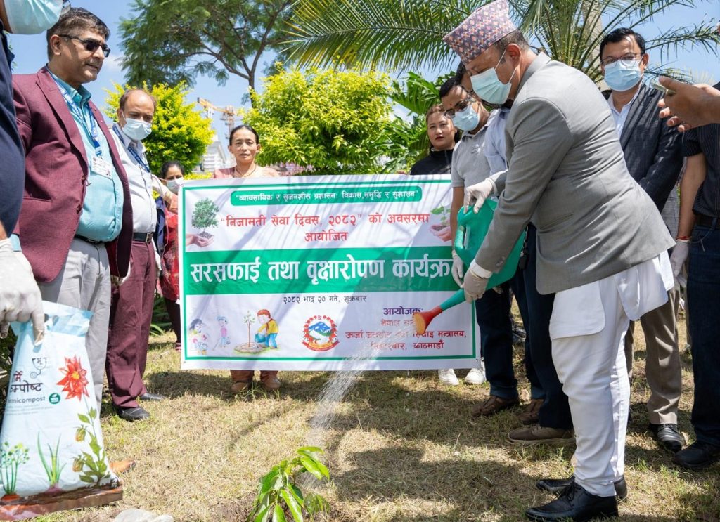 काठमाडौं: निजामती सेवा दिवस–२०८२ का अवसरमा ऊर्जा, जलस्रोत तथा सिँचाइ मन्त्रालयमा वृक्षरोपण तथा सरसफाइ गरिएको छ ।