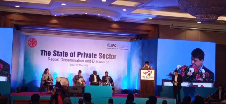 काठमाडौं: निजी क्षेत्रले नेपालको कुल ग्राहस्थ्य उत्पादनमा ८१ प्रतिशत योगदान दिएको एक अध्ययनले देखाएको छ। नेपाल उद्योग वाणिज्य महासंघले अन्तर्राष्ट्रिय वित्त निगम (आइएफसी) सँगको सहकार्यमा ‘द स्टेट अफ प्राइभेट सेक्टर’ नामक अध्ययनले उक्त तथ्यांक यकिन गरेको हो।