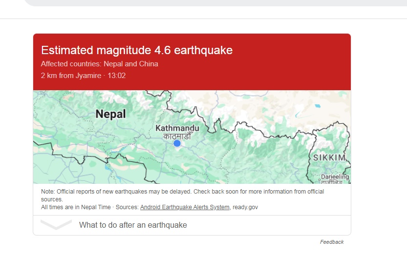 विहिबार १ बजेर २ मिनेट जाँदा भूकम्पको धक्का काठमाडौँ उपत्यकालगायतका ठाउंमा महशुस गरिएको थियो।