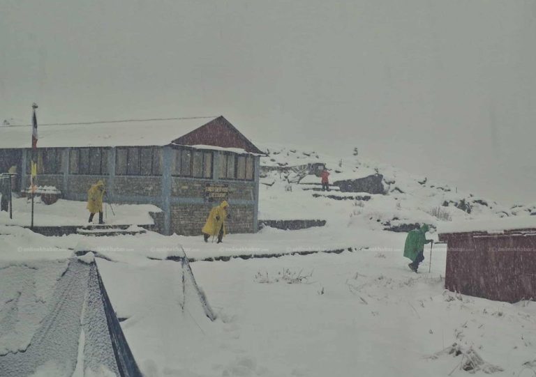 काठमाडौं । अन्नपूर्ण बेसक्याम्प क्षेत्रमा गएरातिदेखि बाक्लो हिमपात भइरहेको छ ।